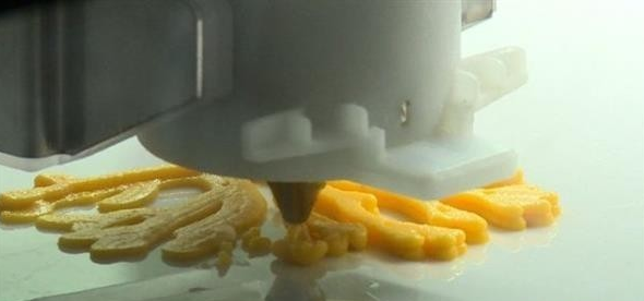 ▲食品3D打印機正在擠出食材