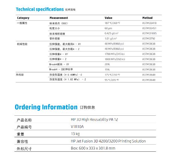 降低總成本、提高生產(chǎn)惠普3D質(zhì)量零件;高可重用性PA12,強(qiáng)大,多用途熱塑性塑料行業(yè)領(lǐng)先的盈余粉末可重復(fù)使用,下面我們看一下該材料的特性: