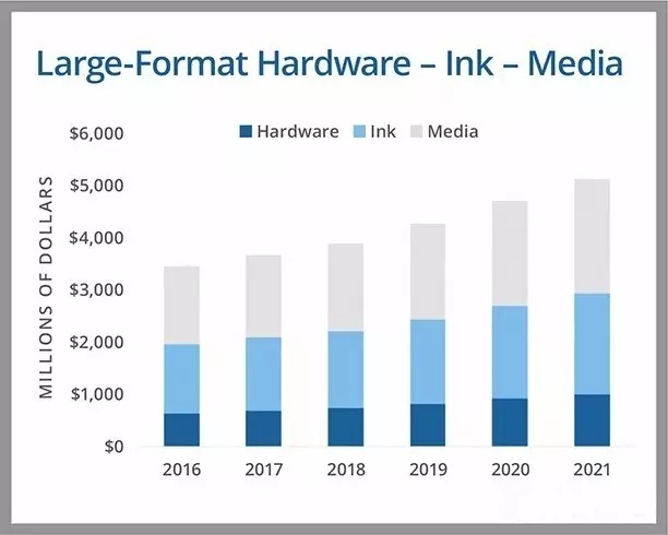 IDC指出,制造商已經(jīng)采取重要措施,通過(guò)不斷開(kāi)發(fā)更好、更高效的新油墨(覆蓋更多的油墨或更少的油墨)來(lái)促成其印刷機(jī)的油墨銷售,開(kāi)發(fā)在更廣泛的基材有更好表現(xiàn)的墨水,延長(zhǎng)保修期和提供更大的墨盒有助于PSP,因?yàn)樗鼈兡軌蜷L(zhǎng)時(shí)間運(yùn)行印刷機(jī)而不會(huì)中斷。在大幅面數(shù)字印刷墨水市場(chǎng)的每個(gè)部分都有這么多的事情發(fā)生,用戶和經(jīng)銷商尋求運(yùn)營(yíng)和銷售優(yōu)勢(shì)必須密切監(jiān)測(cè)這些動(dòng)向。