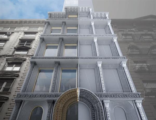 該公司受到即將拆除的第五大道574號的啟發(fā),這座1940年的建筑具有復(fù)雜的裝飾,因為修復(fù)的成本太高而被拆除。正如EDG所言,“以現(xiàn)代手段仍不可能產(chǎn)生古典風(fēng)格的立面裝飾。建筑手工雕刻如果不是一種失落的藝術(shù),也是一種奢侈的奢侈品,激光切割仍然過于昂貴,而預(yù)制混凝土則具有創(chuàng)造性的限制 - 因為其承受能力源于重復(fù)的基本形式。為此,建筑師和開發(fā)商越來越多地轉(zhuǎn)向恢復(fù)現(xiàn)有的寶藏,這些寶藏的供應(yīng)量有限且往往被忽視。“