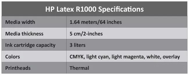 R1000的創(chuàng)新之一是使用HP白色乳膠油墨,它具有很高的光澤度,HP聲稱它不像UV油墨那樣呈黃色; HP乳膠白色墨水的推出,以及新的再循環(huán)系統(tǒng),以避免墨水沉積。
