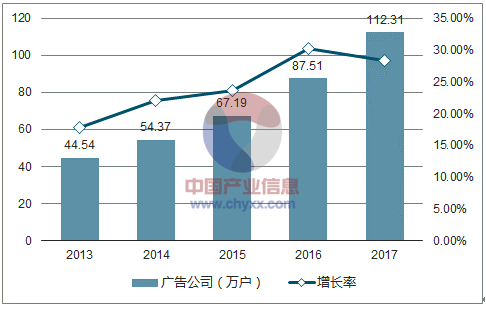 2013-2017 年中國廣告公司戶數(shù)