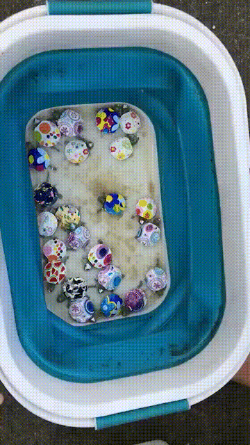 這款網紅爆款產品叫七彩小烏龜, 最早是義烏人搗鼓出來的,加工過程就是用含樹脂的UV墨水在烏龜殼上打印圖案, 然后用紫外線燈把墨水干燥, 這個過程跟刷漆沒有什么兩樣, 完全是傷害小烏龜。