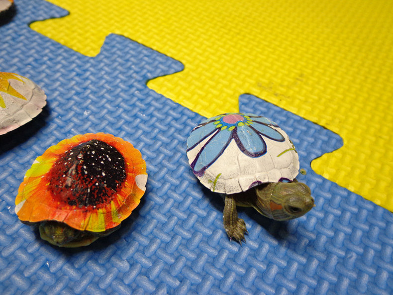 烏龜殼得病后,會有食欲不振,四肢無力等等癥狀。涂抹顏料嚴重的損害了烏龜的健康。
