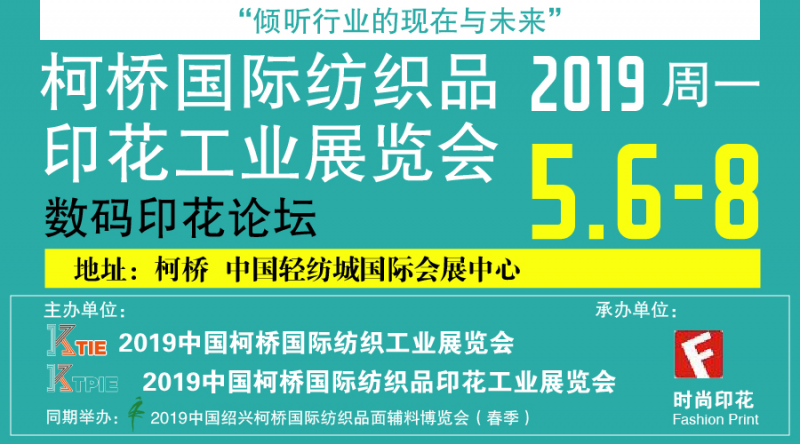 作為行業(yè)內(nèi)知名的紡織行業(yè)盛會2019中國柯橋國際紡織工業(yè)展覽會”及“2019中國柯橋國際紡織品印花工業(yè)展覽會”將攜手2019中國紹興柯橋國際紡織品面輔料博覽會(春季)于2019年5月6-8日在柯橋.輕紡城國際會展中心盛大舉行。