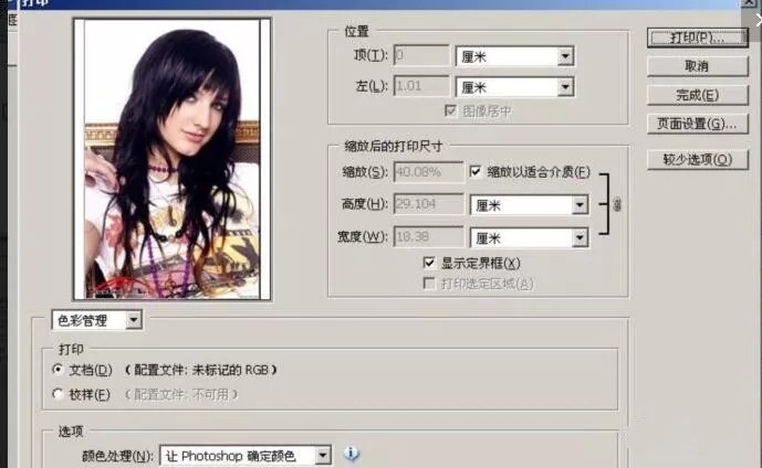 ① 在“顏色處理”選項(xiàng)里選擇:讓photoshop確定顏色。