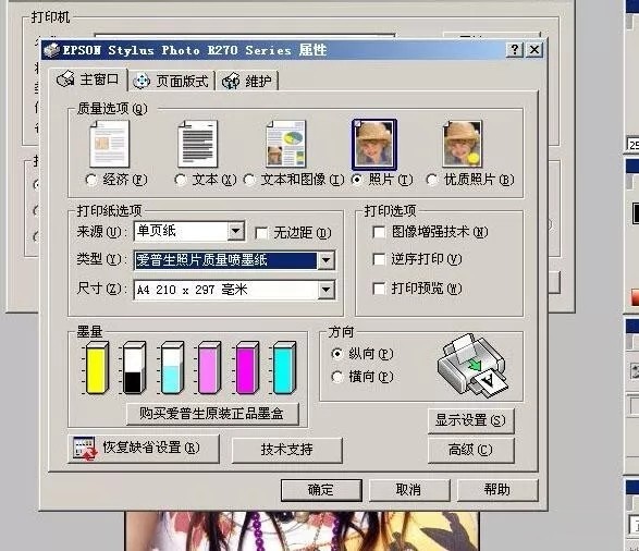 如果是EPSON的機(jī)型請(qǐng)點(diǎn)擊“高級(jí)”,進(jìn)入如下圖的選項(xiàng)卡中,如果不是EPSON機(jī)型則可以直接點(diǎn)確定打印了: