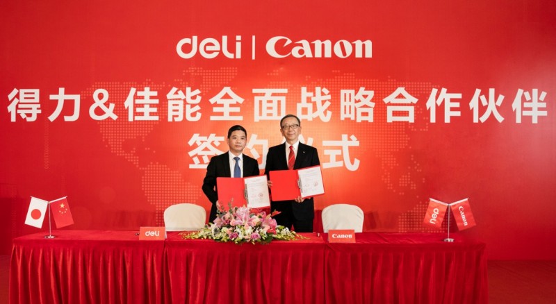 根據(jù)得力官方的消息,近日,佳能(中國)有限公司與得力集團有限公司簽署了全面戰(zhàn)略合作伙伴協(xié)議。