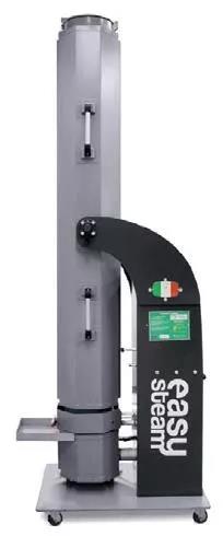 easySTEAM專用于數(shù)碼印花后的汽蒸固色,工作前需將印花布卷繞到多孔經(jīng)軸上。該機(jī)有兩種規(guī)格可供選擇,分別適用于最大幅寬1.8和2.4 m的布卷,最高工作溫度為102 ℃,每次可處理50 m印花布,占地面積約0.8m2。該機(jī)還可選配一套自動軟水單元,能夠有效減少蒸汽發(fā)生器上的水垢沉積,從而降低維護(hù)成本。