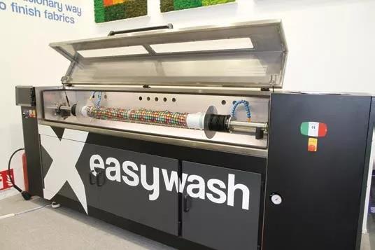 easyWASH專為印花織物的水洗而設(shè)計(jì),每小時(shí)最多可處理約200 m印花布。運(yùn)行前需將印花織物卷到一根多孔經(jīng)軸上,運(yùn)行時(shí)高壓水流從經(jīng)軸的小孔滲透穿過織物并除去浮色。經(jīng)軸兩端的法蘭能夠自動適應(yīng)織物的縮水,保持對布邊的緊密夾持,保證水洗效果。此外,該機(jī)可選配 3 個(gè)獨(dú)立的帶有加熱系統(tǒng)的水箱,最高水溫95 ℃,還可選配一套粉狀助劑計(jì)量和輸送系統(tǒng),實(shí)現(xiàn)更多水洗工藝。easyWASH有 3 個(gè)型號,最大工作幅寬為1.8、2.4和3.3 m,對應(yīng)的占地面積分別約為2.4、2.9和3.8m2。