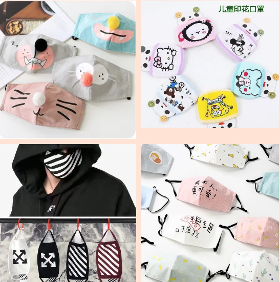 印花口罩,口罩是我們最常用的健康防護類產品,不管是為了防病毒的侵襲還是防塵防霧霾,以及保暖、愛美人士用來起美觀裝飾作用等等,都能看到它的身影。