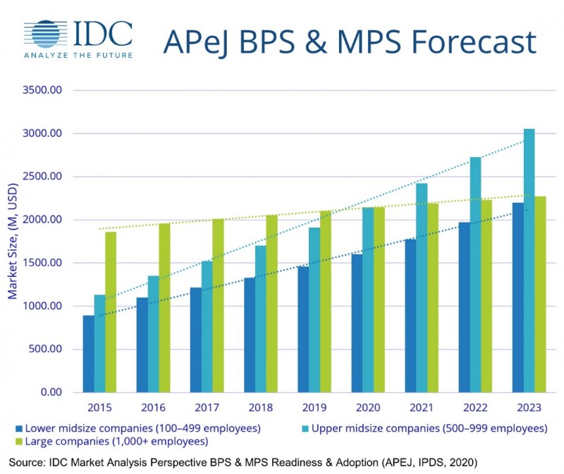 而根據(jù)IDC發(fā)布的《市場(chǎng)分析預(yù)測(cè)》,到2023年,亞太地區(qū)(不包括日本)的基礎(chǔ)打印服務(wù)(BPS)和打印管理服務(wù)(MPS)有望繼續(xù)以8.2%的復(fù)合增長(zhǎng)率增長(zhǎng)。