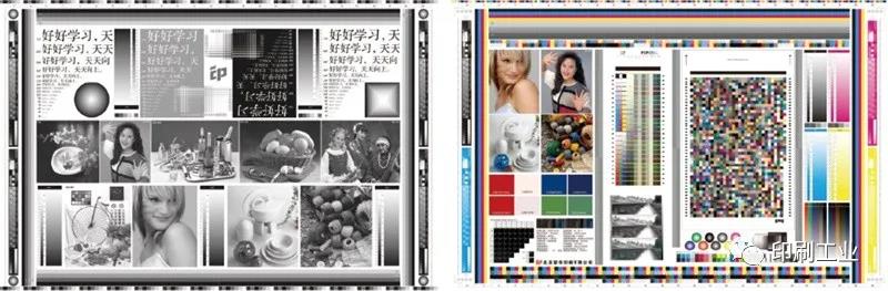為了盡可能在相同印刷條件下檢測(cè)納米噴墨CTP版和感光CTP版的印刷適性差異,我們將具有相同版面內(nèi)容的納米噴墨CTP版和熱敏CTP版(150線)分別制版后上機(jī)印刷。