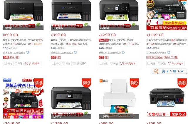 2月份家用打印機品類大量缺貨 截圖自京東商城
