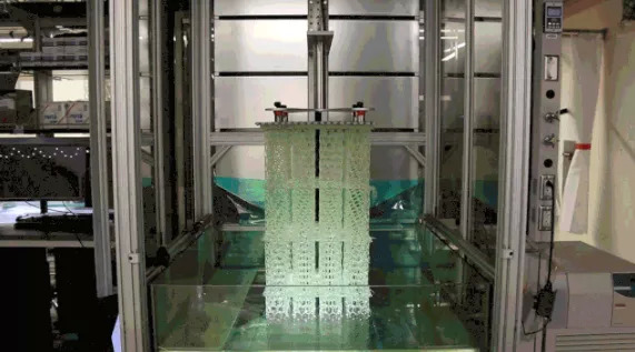 在這一技術(shù)的基礎(chǔ)上,美國西北大學(xué)的化學(xué)家Chad Mirkin及其同事研發(fā)出新的高速樹脂3D打印機(jī),比2015年時(shí)的設(shè)備又得到了十倍的速度提升。Mirkin選擇將一層清油泵到容器的底部以阻止高分子反應(yīng)。同時(shí)這層油還起到了冷卻劑的作用,將帶走打印過程中產(chǎn)生的熱,防止打印出的部件變形。這也意味著這種打印機(jī)不僅僅可以打印厭氧的樹脂,為3D打印打開了廣闊的新材料空間。