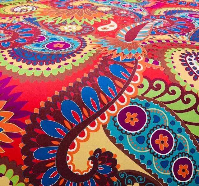 在印花效果及限制方面,數(shù)碼噴墨印花沒有傳統(tǒng)工藝中“花回”長度和色澤套數(shù)的限制。數(shù)碼印花技術(shù)采用數(shù)字圖案,并可以使用計算機(jī)結(jié)合印花設(shè)備、紡織品面料特征,有針對性地調(diào)整墨水ICC曲線來制定出墨方案,使數(shù)碼噴墨印花不受圖案、顏色的制約,且可將色彩展現(xiàn)力發(fā)揮到極致。印花精細(xì)程度與墨滴大小、噴頭特性以及噴印速度有關(guān),一般墨滴越小噴印精度越高。數(shù)碼印花墨水中,色料顆粒為納米級,噴頭孔徑為微米級,且數(shù)碼噴印速度快;而傳統(tǒng)工藝中的網(wǎng)版孔徑一般為100~200目(毫米級)。相比之下,數(shù)碼印花精細(xì)度優(yōu)勢明顯。