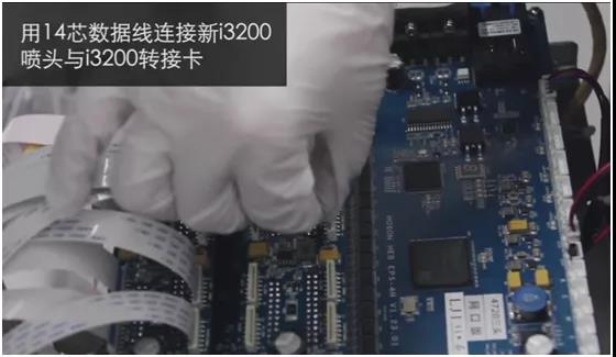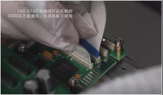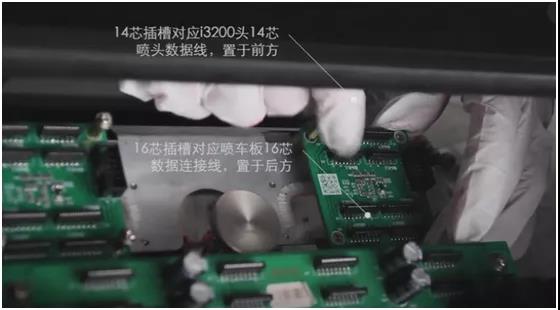 ⑦ 用數(shù)據(jù)線將I3200噴頭,I3200轉(zhuǎn)接卡及噴車板連接進來;