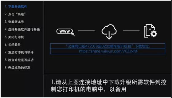 需要注意的是,漢森系統(tǒng)升級不僅是噴頭與轉(zhuǎn)接卡的更換升級,同時需要進行軟件升級,故需要按以下提示先到網(wǎng)絡云端下載升級軟件。