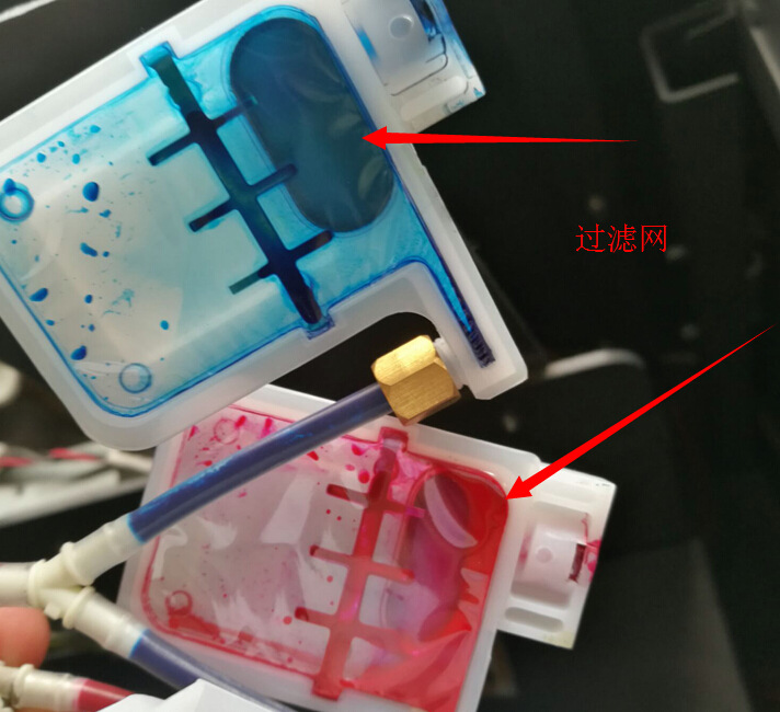 三、【濾網性堵頭】劣質UV墨水中的雜物和有害溶劑類被擋在濾網前,時間長了就會堵。