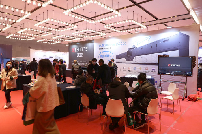 在京瓷展臺外側(cè),與會經(jīng)銷商紛紛拿起TASKalfa Pro 15000c 彩色噴墨數(shù)碼印刷系統(tǒng)輸出的精美印刷成品,不僅驚嘆于其彩色的表現(xiàn)能力,更對其中國紅的輸出質(zhì)量給予了高度好評。