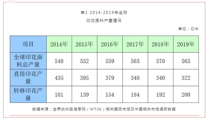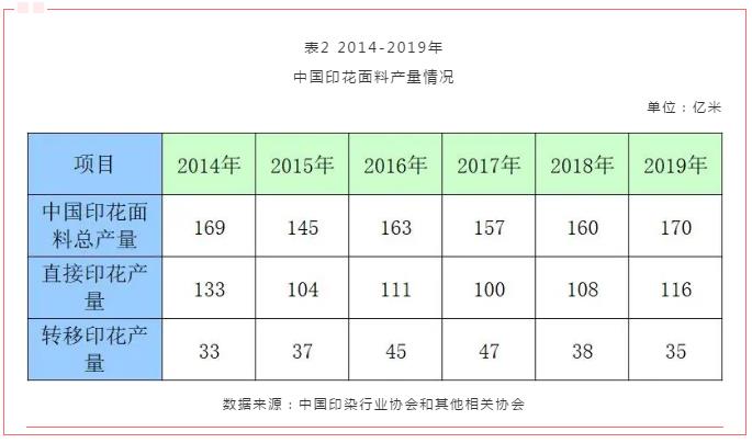 中國在全球紡織品印染加工中占據(jù)重要地位,中國印花面料產(chǎn)量約占全球的30%。2014-2019年,中國印花面料產(chǎn)量見表2。