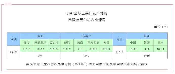 以中國、韓國和日本為代表的東亞地區(qū),數(shù)碼噴墨印花產(chǎn)量占比約為8%-10%;