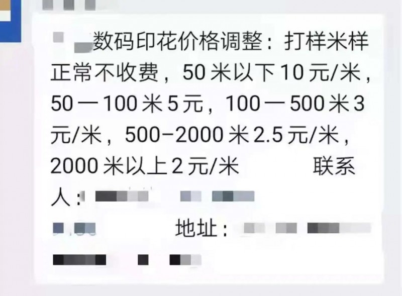 通常,最便宜的是水印。印刷價格一般在2.7元/米左右,較好的已經(jīng)超過3元/米了。另外,印刷費(fèi)300-500元,水印的價格和印染費(fèi)一樣每年都在上漲。然而,數(shù)碼印刷則完全不同,從剛出現(xiàn)時的70-80元/米,迅速降到20元/米、10元/米,到現(xiàn)在的3-5元/米,甚至現(xiàn)在很多工廠都打到了2元/米的超低價格。