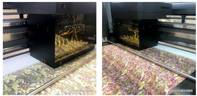 在搭載京瓷噴墨打印頭的印花機(jī)上打印。