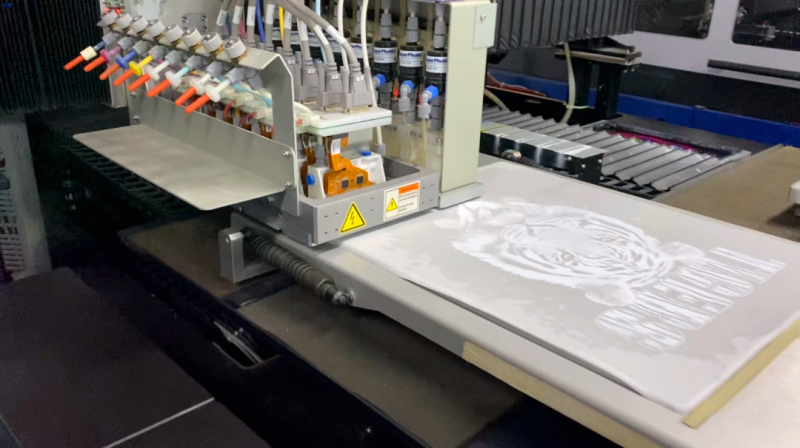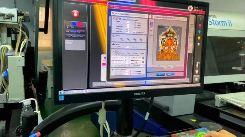 東莞韻麗數(shù)碼印花是一家主做高端個性化定制訂單的印花工廠,兩臺來自康麗的T恤印花機(jī)為客戶提供高質(zhì)量的裁片數(shù)碼印花。時尚印花標(biāo)哥來到韻麗數(shù)碼,為大家展示康麗T恤印花機(jī)的整個定制流程。