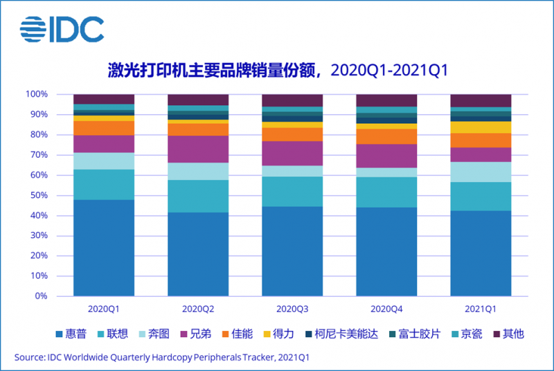 激光打印機(jī)市場(chǎng)在一季度保持了較高的增長(zhǎng),主要由于2020年一季度疫情影響造成了市場(chǎng)規(guī)模的明顯下滑。今年一季度,市場(chǎng)規(guī)模已恢復(fù)至往年正常水平。