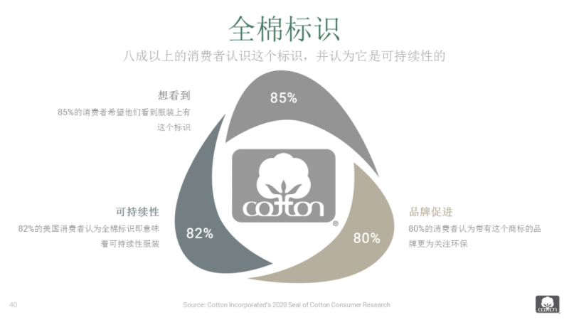 當(dāng)前,循環(huán)時尚、塑料微粒污染、回收利用和可持續(xù)性資質(zhì)證書已經(jīng)成為紡織行業(yè)的可持續(xù)發(fā)展目標(biāo)。但大多數(shù)受訪者并不了解何為循環(huán)時尚以及行業(yè)可持續(xù)認(rèn)證/證書的含義。Cotton Incorporated 推出的科普片詳細(xì)闡述了棉制品的循環(huán)利用優(yōu)勢。從服裝、家紡到無紡產(chǎn)品,全棉紡織品均可進(jìn)行回收并用于制造新產(chǎn)品。當(dāng)棉制品無法再利用或回收后,在工業(yè)堆肥和水環(huán)境中都可以降解,降解速度快于人造纖維素纖維和化學(xué)纖維,并最終能夠改善土壤健康,滋養(yǎng)自然資源。