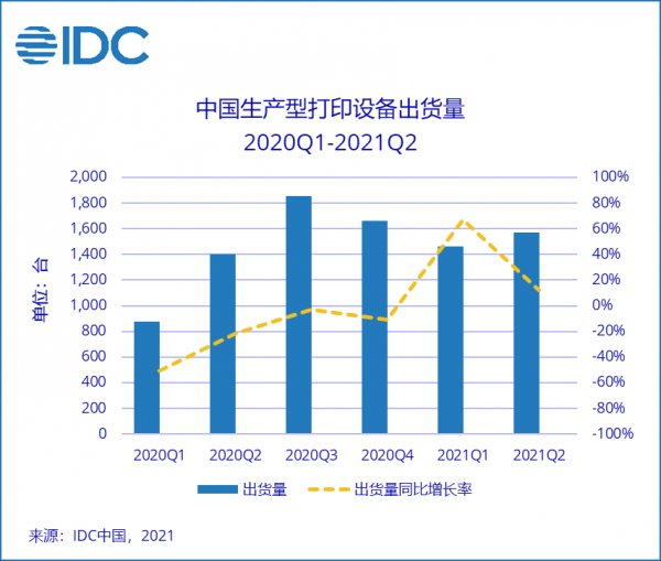 IDC《2021年第二季度中國生產(chǎn)型打印機(jī)市場季度追蹤報告》顯示,2021年第二季度中國市場生產(chǎn)型打印設(shè)備出貨量同比增長11.9%,延續(xù)后疫情時代下的市場穩(wěn)步回升態(tài)勢。
