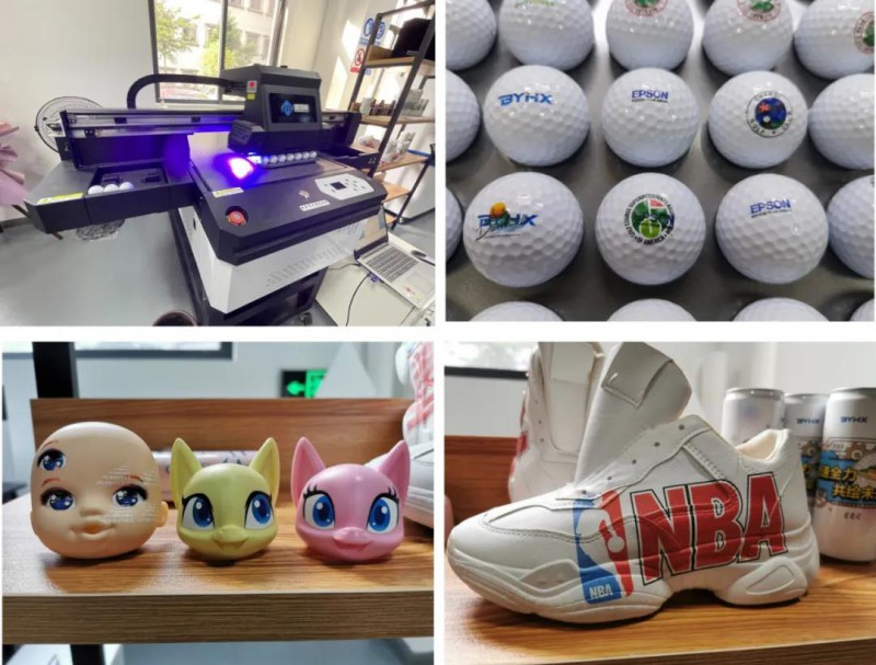 在愛普生打印頭華南測試中心現(xiàn)場,我們觀摩到搭載了愛普生打印頭和博源恒芯板卡的多樣創(chuàng)新方案。其中,運用在高爾夫球上的高落差小平板應(yīng)用方案,可以實現(xiàn)10mm(I1600 UV打印頭)的打印高度落差。