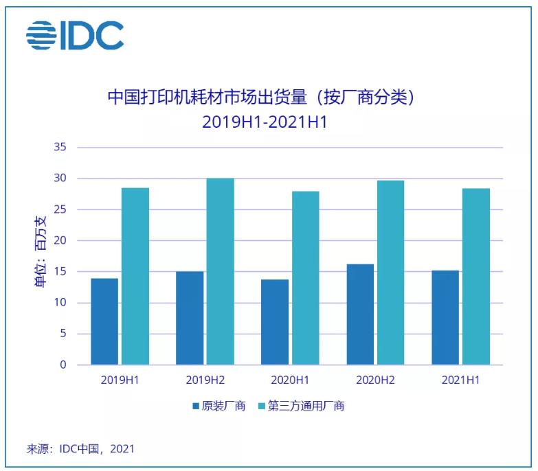 打印機(jī)保有量是整體打印耗材產(chǎn)生不斷需求的源動(dòng)力。2020年疫情帶來家用打印需求爆發(fā)和疫情后采購(gòu)需求恢復(fù),打印設(shè)備的出貨量在2020年出現(xiàn)大幅增長(zhǎng)。經(jīng)過IDC進(jìn)行單機(jī)打印衰減的階梯性加權(quán)測(cè)算,噴墨和激光打印機(jī)的總體保有量在2020年依然保持了8.7%的增幅。同時(shí)打印耗材的單張成本已出現(xiàn)明顯下降,這主要是由于大墨倉(cāng)產(chǎn)品的占比持續(xù)提升和以惠普兄弟主導(dǎo)的“按需供粉” 激光打印系統(tǒng)逐步興起。單張打印成本的下降對(duì)每年新增百萬級(jí)別的中小企業(yè)和傳統(tǒng)行業(yè)客戶無疑具有強(qiáng)大吸引力;2021年上半年噴墨和激光的耗材并沒有因?yàn)閱蝺r(jià)的下降和無紙化進(jìn)程的延續(xù)而導(dǎo)致銷售額的下降,相比2020年同期,噴墨和激光耗材的銷售額分別增長(zhǎng)了27.5%和9.4%。