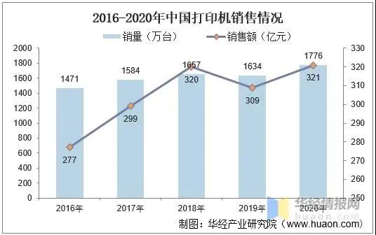 華經(jīng)產(chǎn)業(yè)研究院近日發(fā)布了《2021-2026年中國打印耗材市場發(fā)展前景預測及投資戰(zhàn)略咨詢報告》。據(jù)報告統(tǒng)計,截至2020年全球打印機銷量8760萬臺,銷售額為421億美元。