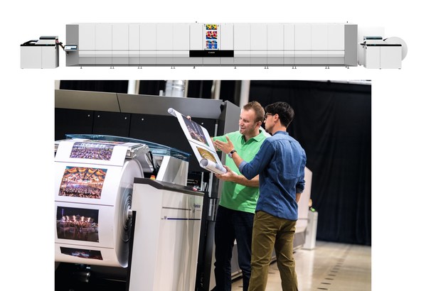 佳能varioPRINT iX系列單張紙噴墨印刷系統(tǒng) (圖片中設(shè)備長(zhǎng)寬高約:8,800 x 2,750 x 2,300 mm)