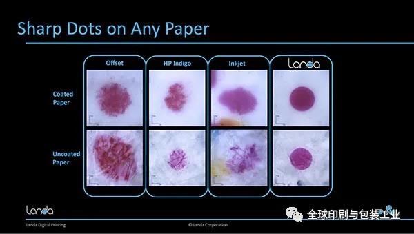 數(shù)字印刷專家Zwang指出,這種清晰度來自油墨接觸介質(zhì)之前水的蒸發(fā)。“對于大多數(shù)數(shù)字印刷技術(shù),例如噴墨或UV而言,干燥是事后進行的。到那時,水已經(jīng)開始吸收到紙張中。在這種情況下,紙張在印刷之前就已經(jīng)蒸發(fā)了水分,這就是為什么你能夠獲得[這種水平的清晰度。這個過程也是瀾達可以接受未經(jīng)預(yù)處理或后處理的傳統(tǒng)膠印紙張的原因。”