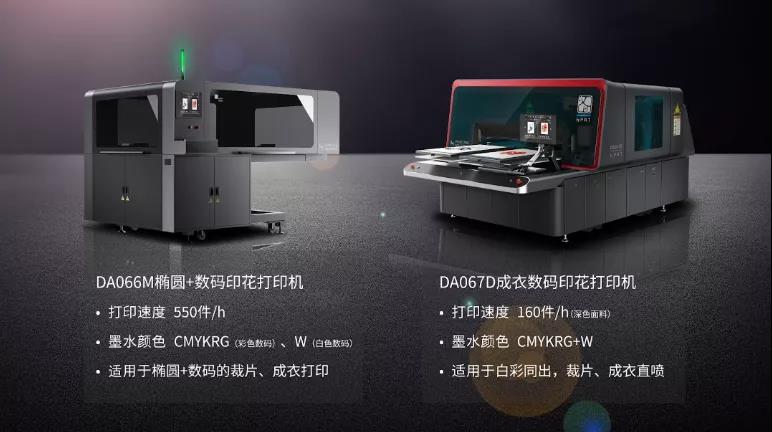 DA066M橢圓+數(shù)碼印花打印機(jī)的多機(jī)位組合,多機(jī)位自由組合搭配,滿足多工位流水線生產(chǎn)需求。不同工藝顏色圖案可同時生產(chǎn),訂單自由組合,可隨時插入新訂單。