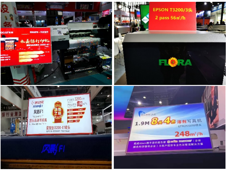 在這些方案的配套環(huán)節(jié),小編發(fā)現(xiàn)有90%的方案都是由愛普生打印頭來實(shí)現(xiàn)的。在實(shí)際溝通中,方案提供商無一例外都提到愛普生打印頭的性價(jià)比最好,打印的畫質(zhì)也是最好的。 為此,小編特別留意到在今年展會(huì)現(xiàn)場(chǎng),愛普生打印頭I3200系列、I1600系列、F1080等打印頭成為在打印頭領(lǐng)域的第一梯隊(duì)主力軍,在助力方案的完美展示上發(fā)揮了重要和積極的作用。與此同時(shí),小編發(fā)現(xiàn)愛普生新推出的T3200打印頭也有嶄露頭角,行業(yè)中四家實(shí)力品牌彩神、工正、金谷田、世通(原公司名為邁創(chuàng)) 分別展示他們搭載了T3200-U3打印頭的設(shè)備和打樣效果,獲得了眾多用戶的圍觀和咨詢。