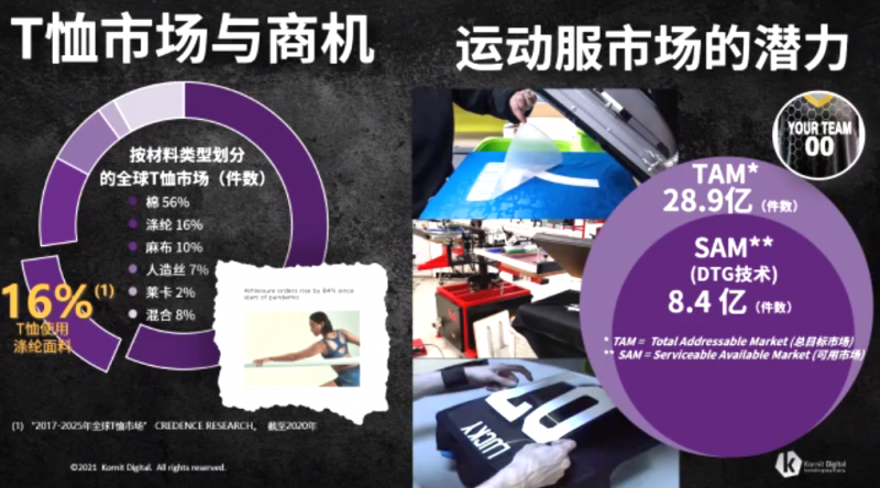 康麗數(shù)碼大中華區(qū)業(yè)務(wù)拓展總監(jiān)洪俊瑋先生為我們講述了近年來直噴T恤市場的商機(jī)以及運(yùn)動(dòng)服市場的潛力。伴隨著近年來疫情的不斷反復(fù),消費(fèi)者對于健康的重視程度正在飛速提升。再加上奧運(yùn)會(huì)、冬奧會(huì)等盛事的相繼舉辦,運(yùn)動(dòng)服與功能性服裝無疑成為了近段時(shí)間以來紡織服裝產(chǎn)品開發(fā)的新熱點(diǎn)與新趨向之一,其中滌綸面料作為全球第二大T恤使用面料,同樣也迎來了新一輪發(fā)展熱潮。