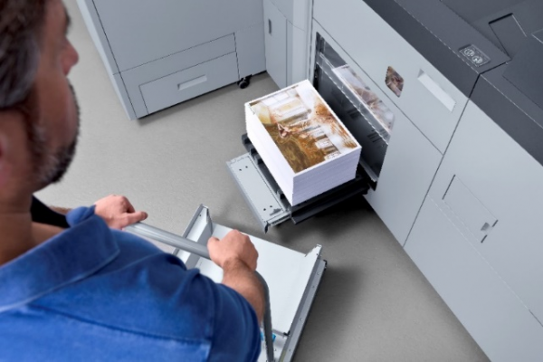 相比以往同類機(jī)型,AccurioPress C7100系列提供了更多選擇和靈活配置,不但擁有和AccurioPress C14000系列同樣的大容量紙柜,也擁有和AccurioPress C4080系列同類型的大容量紙倉,用戶可根據(jù)自身需求自由選擇。其中,大容量長紙紙柜可容納900mm的紙張共2,300張(128g/m2),還可選配手送以打印1,300mm的紙張,手送安裝于紙柜頂部,可有效節(jié)約空間;大容量紙倉也可選購,其可達(dá)到762mm的大量進(jìn)紙,同時(shí)還可搭配手送以打印1,300mm的紙張,可進(jìn)一步拓展印刷生產(chǎn)力。