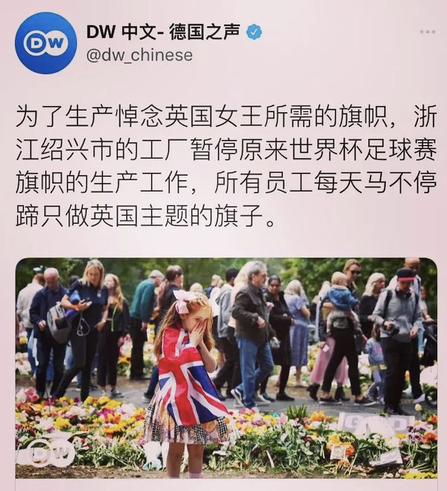 當(dāng)?shù)貢r(shí)間9月19日上午11點(diǎn),英國(guó)女王伊麗莎白二世的葬禮威斯敏斯特宮舉行,全球近200個(gè)國(guó)家與地區(qū)約500名代表出席。而就在全球悼念英女王的時(shí)候,很少有人知道中國(guó)一家工廠因?yàn)榕蹼x世已經(jīng)加班加點(diǎn)了無數(shù)天。