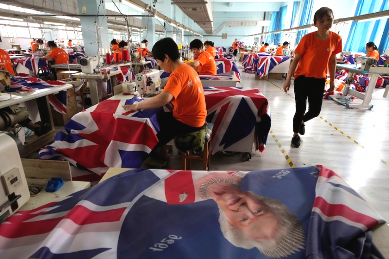 就在接到訂單的當(dāng)天,工廠中的100多名員工從早上7:30開始,連續(xù)工作14個(gè)小時(shí),只制作英國(guó)主題的旗幟。而隨后的一周多時(shí)間,創(chuàng)棟旅游160多位員工,還有多個(gè)加工廠的工人更是加班加點(diǎn)趕工,就是這種情況下,一些坐不住的客戶,索性直接趕來工廠拿貨,甚至不要求包裝,直接放在大盒子里就拉走了。