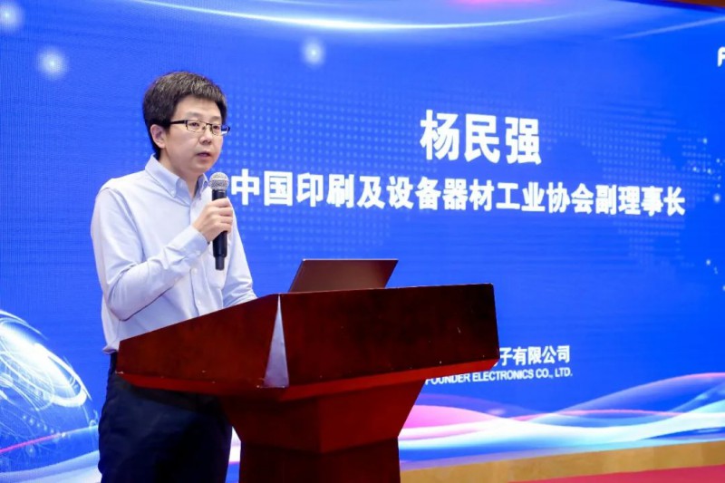 中國印工協(xié)副理事長楊民強(qiáng)出席分享會并發(fā)表致辭,對行業(yè)趨勢做出預(yù)判,同時充分肯定了方正電子在攻克高速噴墨技術(shù)難題中取得的成果。