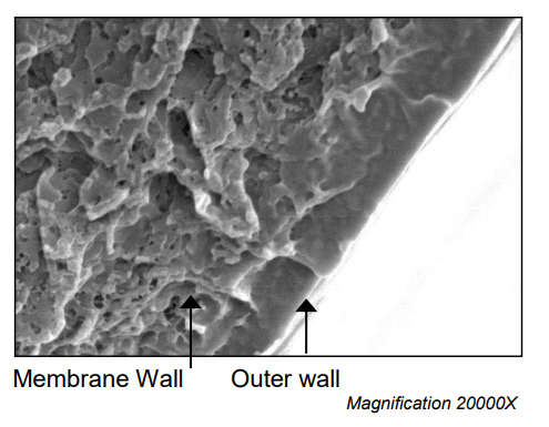 3M™ Liqui-Cel™ SP系列膜接觸器 (脫氣膜) 的膜絲采用聚烯烴建造,具有較高的透氣性和化學(xué)相容性。膜絲為中空纖維建造,外側(cè)有一層致密的皮層,氣體可以高效滲透通過,有效防止低表面張力噴墨濕出,延長使用壽命。