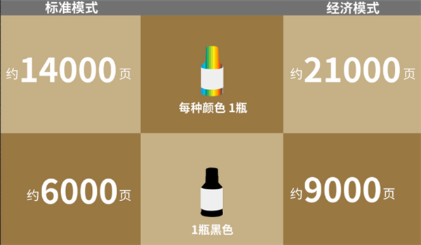 大容量墨水盒大幅削減了墨水成本。在經(jīng)濟(jì)模式下打印時(shí),墨水使用量更低,一瓶黑墨水最多可打印約9000頁,每種顏色彩墨最多可打印約21000頁。