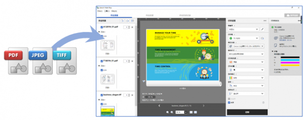 imagePROGRAF TC-5200支持多種打印應(yīng)用方案和設(shè)備管理方案,圖紙輸出時(shí)可采用免費(fèi)贈(zèng)送的Direct Print Plus應(yīng)用方案:多種類型的文件可直接進(jìn)行拖拽式打印,無(wú)需打開(kāi)文件應(yīng)用程序來(lái)選定紙張來(lái)源和尺寸大小,讓打印小白也能沒(méi)有壓力地實(shí)現(xiàn)多種格式和尺寸的打印輸出。此外,采用Canon Print Inkjet/SELPHY軟件應(yīng)用方案,用戶通過(guò)手機(jī)、平板電腦等智能移動(dòng)終端就可以完成打印、復(fù)印、耗材余量確認(rèn)、固件升級(jí)等操作,擺脫傳統(tǒng)電腦臺(tái)式機(jī)的操作束縛,讓辦公更輕松。
