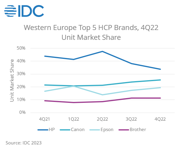 IDC Western European HCP Market, 4Q22 Hardcopy Shipments Dipped Below 17 Million Units in 2022 Despite a Solid End to the Year, Says IDC - 2023 Feb -F-1.png