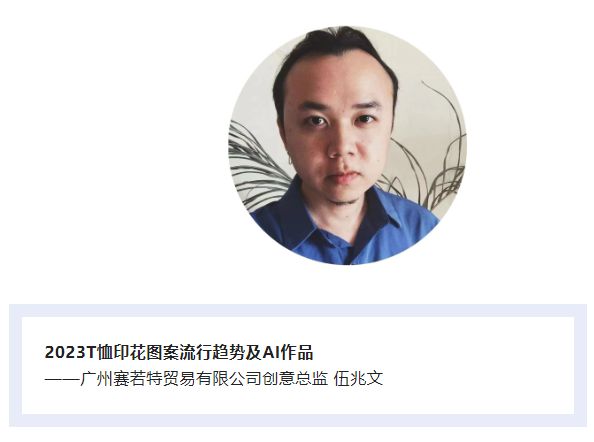 T恤單品中,圖案元素對(duì)于整體風(fēng)格的塑造影響很大。2023春夏T恤圖案將更多地融入潮酷味、甜酷風(fēng)、趣味化、學(xué)院風(fēng)、運(yùn)動(dòng)細(xì)節(jié)、扎染暈染和涂鴉設(shè)計(jì)等元素,讓產(chǎn)品去老齡化和年輕化,以打造更具活力的T恤單品。如何使用AI生成圖案?并在T恤上得到完美表達(dá)。伍總監(jiān)的演講將圍繞T恤印花圖案流行趨勢(shì)展開。