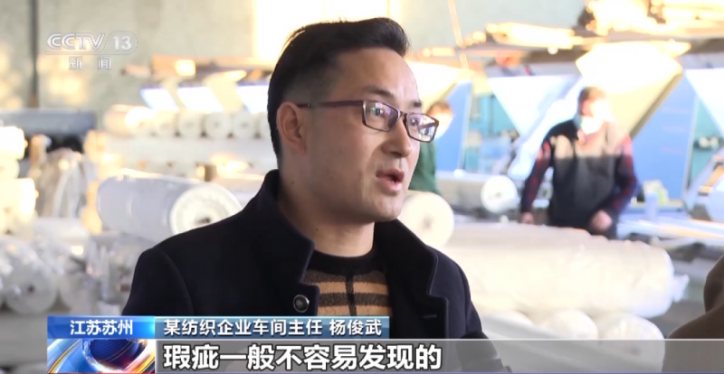 某紡織企業(yè)車間主任 楊俊武:以前人工肉眼看的話,有的人有遺漏的,瑕疵一般不容易發(fā)現(xiàn)的。但是通過這套機(jī)器,(瑕疵)檢測率達(dá)到了99%。